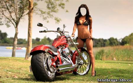 Шаблон для фото - Фигуристая брюнетка рядом с байком PSD | 3200x2000 | 300 dpi | 40 мб Автор: Alexey84