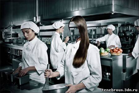 Девушка повар профессиональной кухни - шаблон psd женский PSD | 2100x1400 | 300 dpi | 22 мб Автор: Alexey84