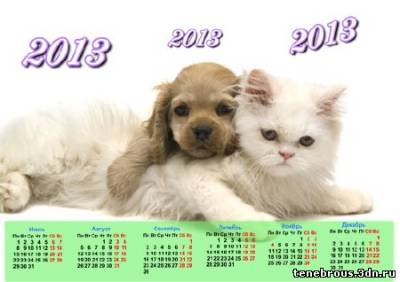 Календарь 2013 - Кошечка и собачка PSD | 3500x2480 | 300 dpi | 22 мб Автор: Alexey84